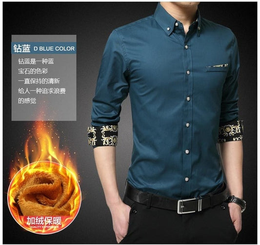 Wenyujh Men Slim Long-sleeved Shirt Fashion Dark Plaid Hot Sales 2019 Autumn Fashion Dress Shirts Solid Color Large Size Blouse