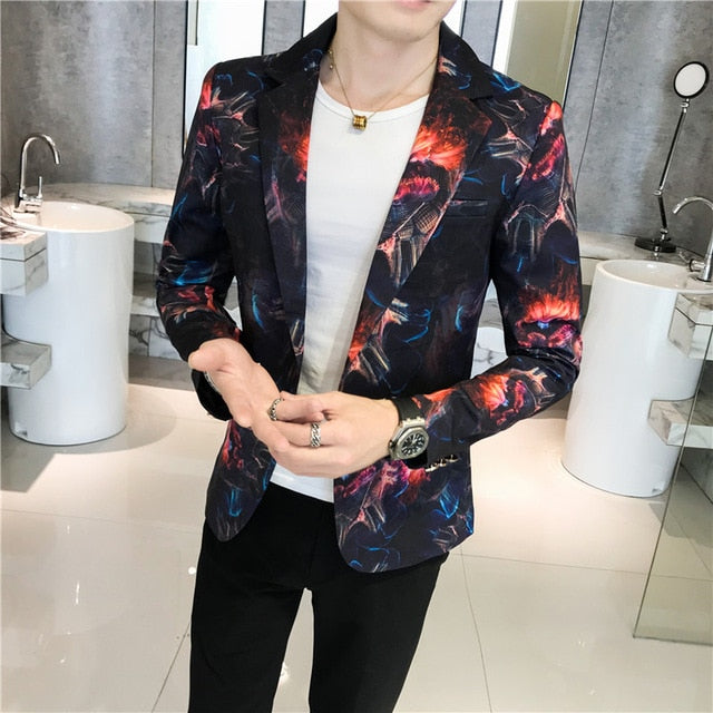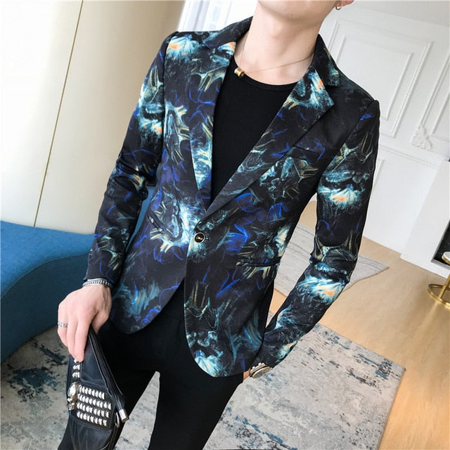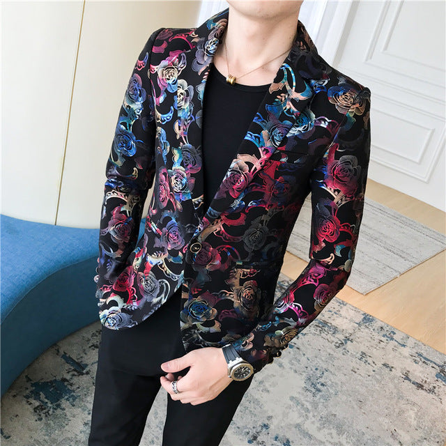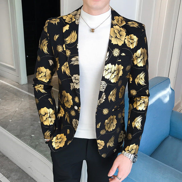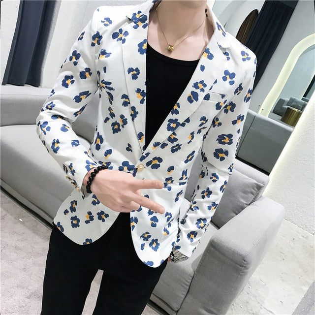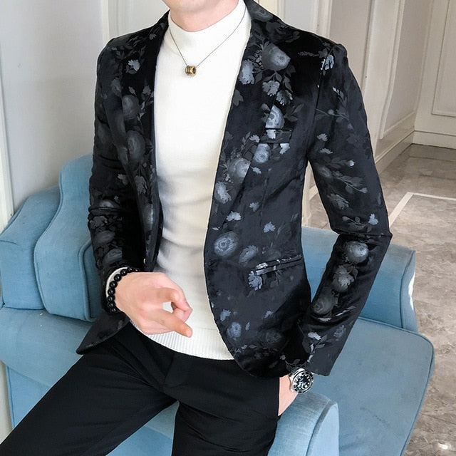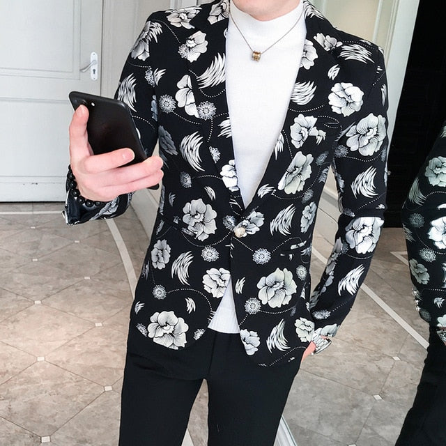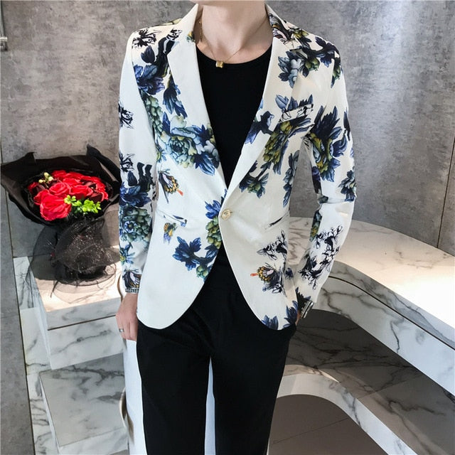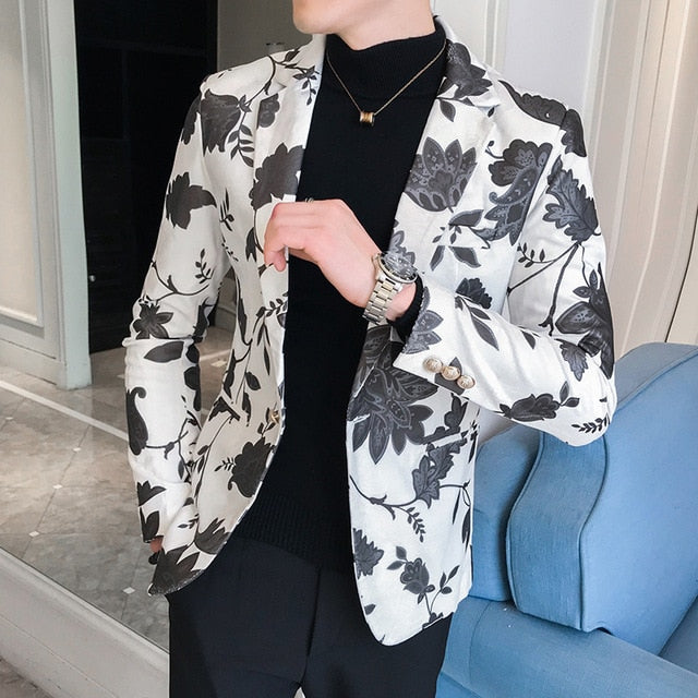 Unique designs Stage Costume Tuxedos Blazer Men Slim fit Letter Floral print Suit Mens Blazer Jacket White Black